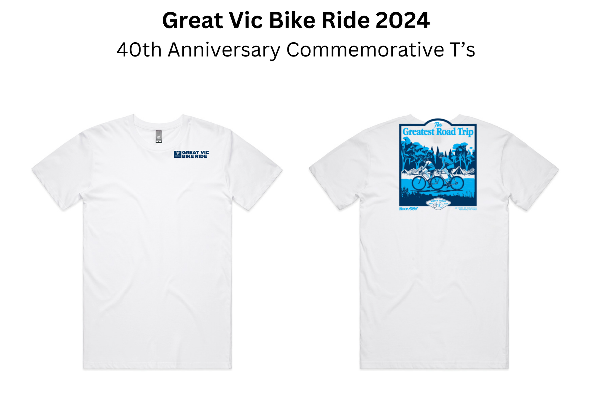Our commemorative tee, celebrates the GREAT adventure that has been rolling for 40 years since 1984.